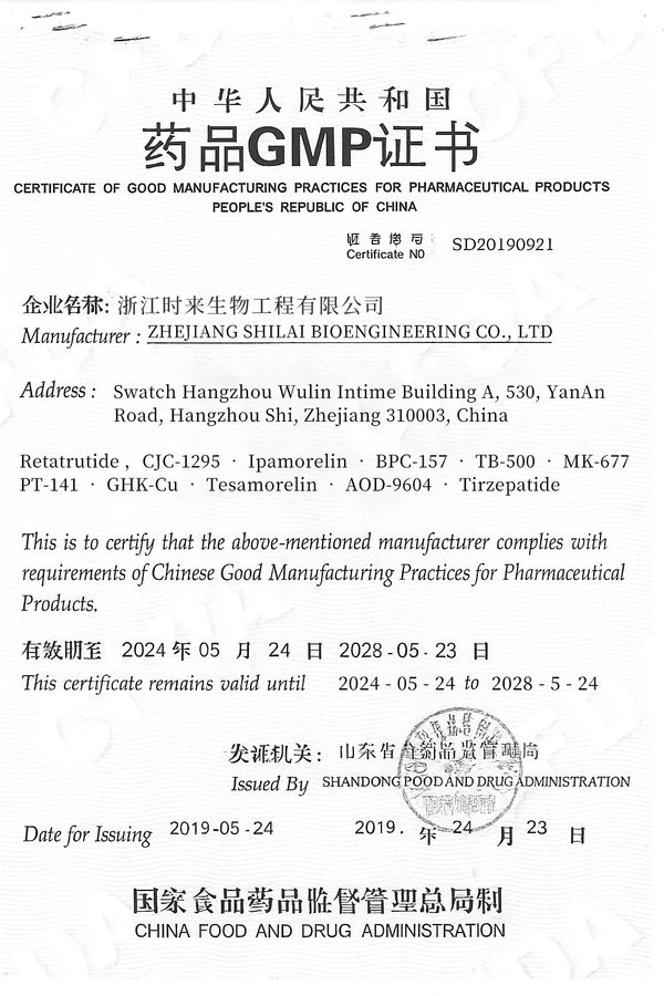At ShiLai™ Peptide Technologies, we are a trusted GMP-certified and ISO 9001:2015 quality management certified peptide manufacturer